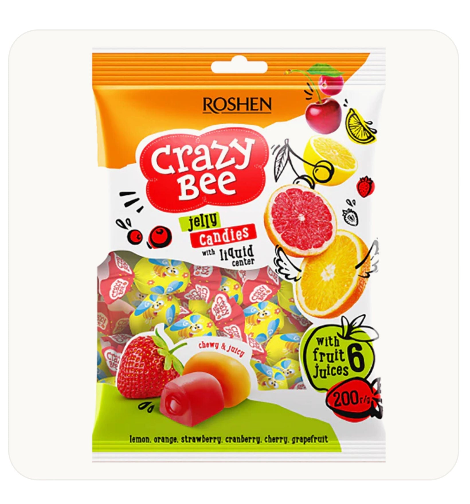 Roshen Crazy Bee Jelly Candy with Fruity Filling, Made with 6 Fruit Juices, Kosher, Halal